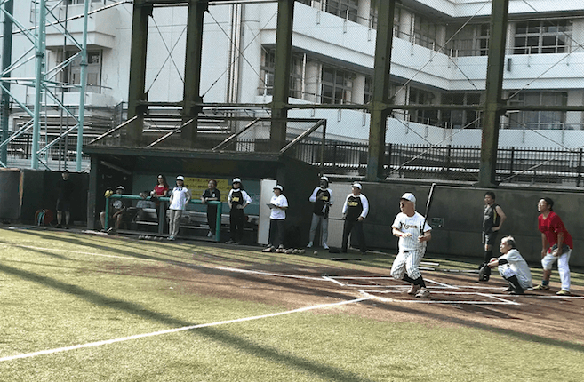 球場は、神宮絵画館前野球場から始まり、あちこち転戦したものの、今年度から地下鉄外苑前駅徒歩三分環境良墓地至近日当抜群の青山運動場が、ホームグラウンドとして定着した(実業之日本社さまのおかげです)。これは、狭いながらも人工芝にダグアウトつきの、れっきとした野球場である!