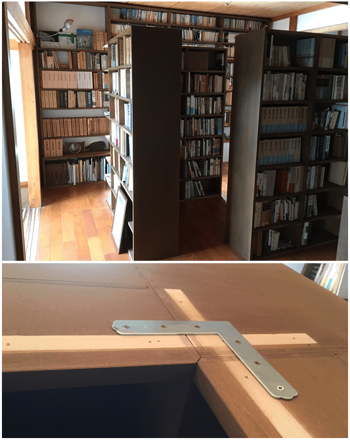 増え続ける蔵書のために新たに造った書庫も例に漏れず。前の家の作り付け本棚がえらく使い勝手がよかったので、現場を見てもらい、色と素材を同じにし、四六判を出し入れするのにちょうどいい棚の高さを指定し、かつて泊まった宿の書庫を全体図として示し、と十二分に打ち合わせした……のだが、ここもまた、色も寸法も違えば、塗りむら多数、壁面と本棚の間に隙間まで生じているという無残な結果に。